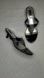 A beautiful, low 'kitten heel' sandal with a cluster of sparkling jewels on the top of the foot strap.