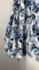 Stylish blouse with navy floral pattern. Features a draped neckline and flared sleeves.