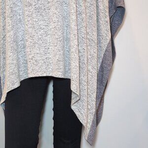 White House Black Market Poncho Sweater Boat Neck Two Tone Grey Heathered Knit