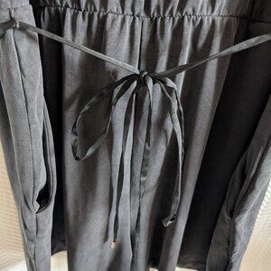 Stylish and laid-back, this White House Black Market romper is a versatile addition to your wardrobe! Crafted from a soft and stretchy blend of 68% Modal, 27% Polyester, and 5% Spandex, it drapes beautifully. The romper features a stylish V-neck with subtle pleating, convenient side pockets, and an elastic waist with an adjustable drawstring tie for a custom fit. Its faded black color gives it a modern, lived-in feel. Perfect for warm weather, travel, or a stylish casual look. In like-new condition!