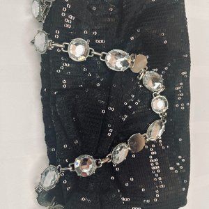 White House Black Market Sequin Bag Jewelled Strap Black Large Bow Zip Close. Condition: Pre-ownedPre-owned- “excellent pre owned condition.”