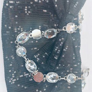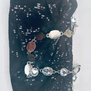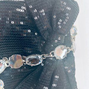 White House Black Market Sequin Bag Jewelled Strap Black Large Bow Zip Close
