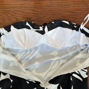 Stunning maxi dress for a those super petite. Black and white floral design, rear invisible zipper. Like new, no stains. 100% silk with polyester lining. Straps* can be worn around neck or tucked in. *Slight defect - one strap is coming loose from dress but can be easily repaired. Size 00 - fits very small around the ribcage. Additional measurements can be provided upon request.