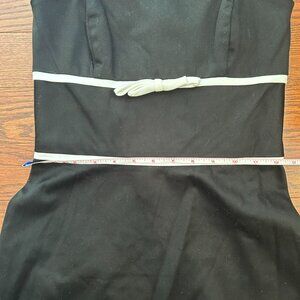 Like new condition, barely worn. White House Black Market strapless cocktail dress. Black with white trim accents. Back invisible zipper with clasp. Breathable fabric - 97% cotton, 3% spandex. For petite frames and A cup sizes. Perfect for a summer weddings. Additional measurements can be provided.