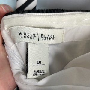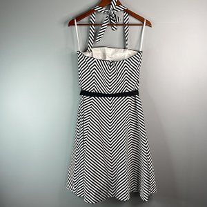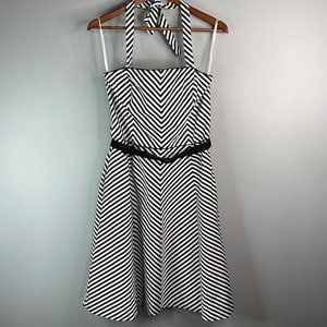 White House Black Market Strapless Halter Dress Black White Stripe Midi Size 10