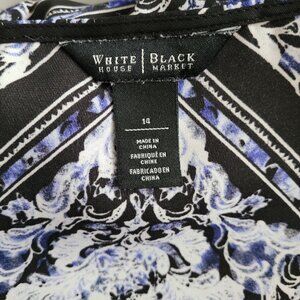White House Black Market Top Womens 14 Black Blue Print Crossover Faux Wrap