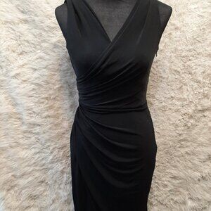 Check out this White House Black Market Women's Black Sleeveless Faux-Wrap Knit Dress is in very great pre-owned condition.