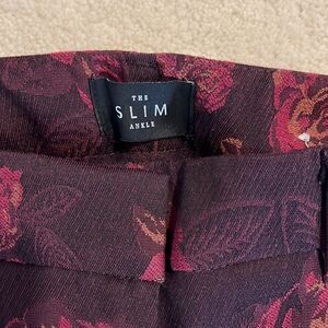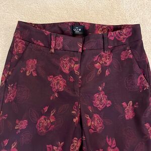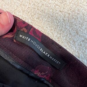 White House Black Market Women's Floral Print Slim Ankle Jacquard Pants 0P. Burgundy. Like new