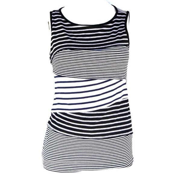 White House Black Market Womens Small Black White Tank Top Sleeveless Stripe Top