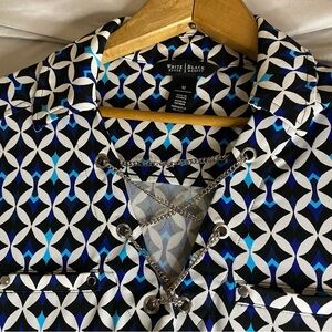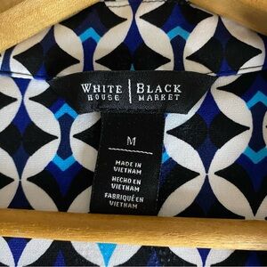 White House|Black Market Dress Womans Medium Collard Chain V Neck Geometric Blue