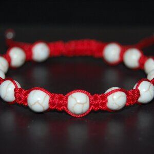 White Howlite Bracelet,Red String Shamballa Bracelet,Drawstring Bracelet