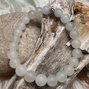 White Jade, Matte Hematite and Pink Jasper Genuine Gemstone Stretch Bracelets