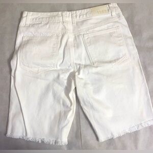 These white jean shorts offer a crisp, clean look with their Bermuda style and solid white denim. Perfect for a casual day out, they provide a comfortable fit with a medium-weight fabric.