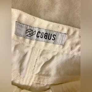 These white jean shorts offer a crisp, clean look with their Bermuda style and solid white denim. Perfect for a casual day out, they provide a comfortable fit with a medium-weight fabric.