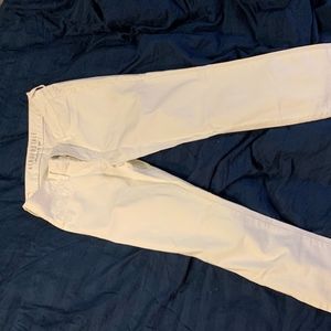 These are comfortable, mid waist, white jeans from Aeropostale that come with a silver button.