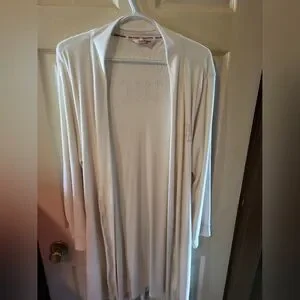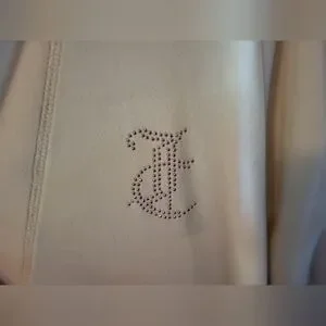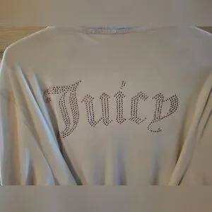This beautiful white Juicy Couture robe is absolutely stunning! The soft material keeps you ultra comfortable! Size L/XL