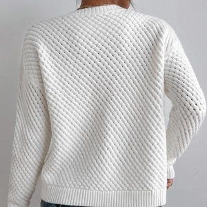 White Knit Drop Shoulder Round Neck Sweater