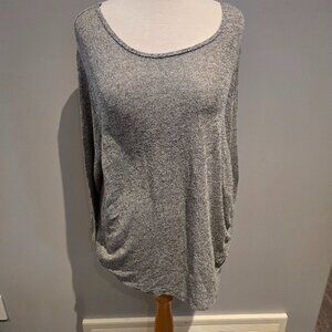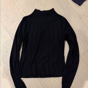 Stylish white knit sweater featuring black trim details. Perfect for layering.