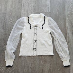 White Knit and Sheer Sleeves Shirt XS