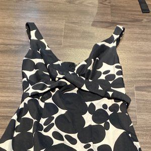 White LE CHÂTEAU Dress With Black Polkadots, Size XX-Small. 63% Cotton, 37% Spandex.