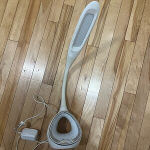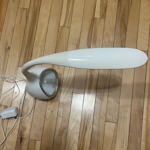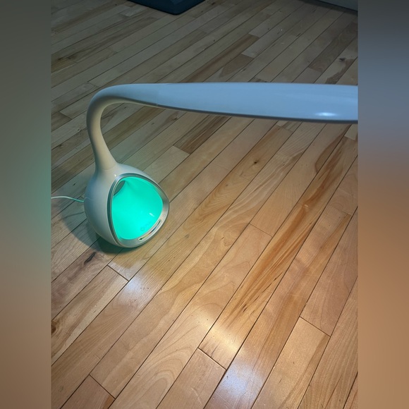 Sleek white LED desk lamp with adjustable neck. Perfect for reading or office use. Color your world with the OttLite LED desk lamp with color-changing base. The circular base features a fun color-changing area with touch controls. Easily select your favorite color or cycle through the entire color spectrum.