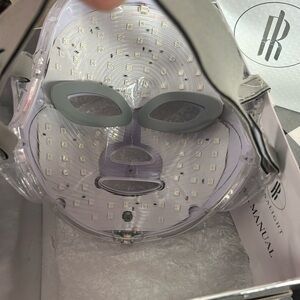 Experience rejuvenating skincare with the LED Face Mask. This white mask offers advanced light therapy for a radiant complexion. Perfect for enhancing your skincare routine. Works great. Had for about a year only used it a couple of times. Has charging cord but no cube. Has been disinfected.