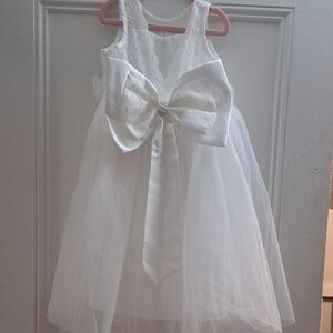 Beautiful white lace dress with a flowing skirt. Perfect for special occasions. Bow on the back is detachable. Never worn.