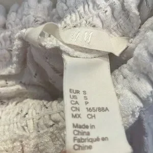 Elegant white lace top with a stylish ruffle design. Perfect for any occasion. Pit to pit 14 inches, shoulder to hem 21 inches.