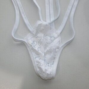 style : lingerie teddy, very sexy lace top with strappy front teddy, lace crotch, lace back panel with thong bottom