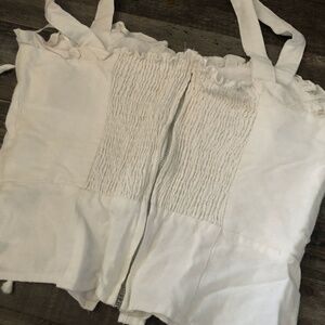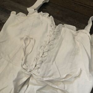 Chic and stylish white lace-up tank top perfect for any occasion. Enjoy a comfortable fit with adjustable straps. Ideal for pairing with jeans or skirts for a casual yet elegant look.