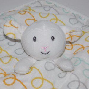 White Lamb Squiggly Lines Writing Rattle Baby Security blanket Lovey Nunu Plush