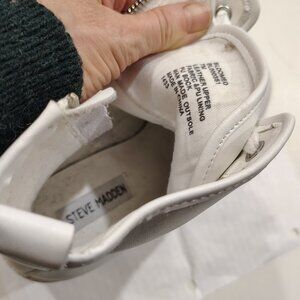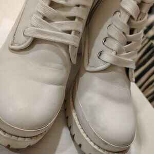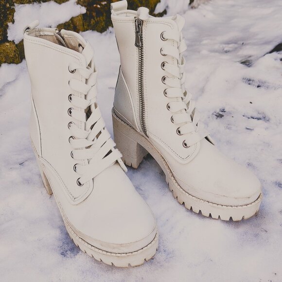 These Steve Madden white leather boots have white soles, lace up for perfect comfort and side zippers. They are a perfect size 7. Such a fun look!