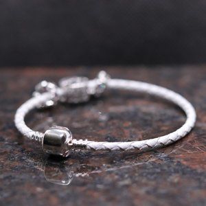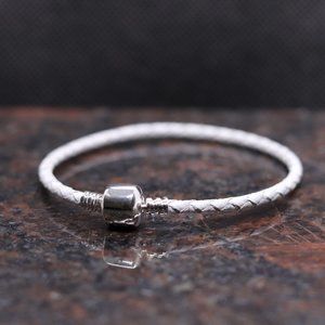White Leather Bracelet with Sterling Silver Barrel Clasp - BRAND NEW