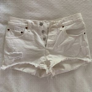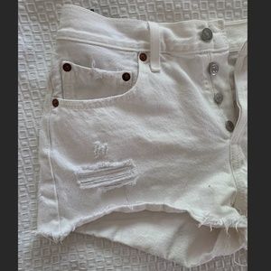 Bought these cute white Levi's shorts from Free People 3 years ago! Their too small for me now so I'm reselling them. Their distressed on the left leg and at the bottom. Comfy as well!