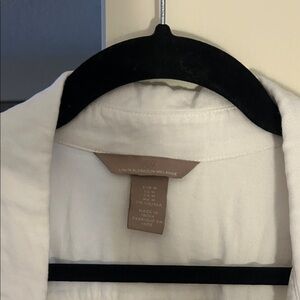 Classic white button-up shirt with a linen blend material. Light, breathable and in good condition!