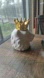 Elegant white lion head with a shiny gold crown. Perfect for home decor.