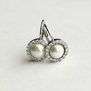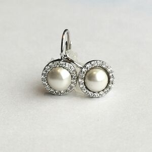 White Mabe pearl cz halo lever back earrings sterling silver 🆕