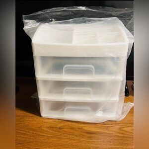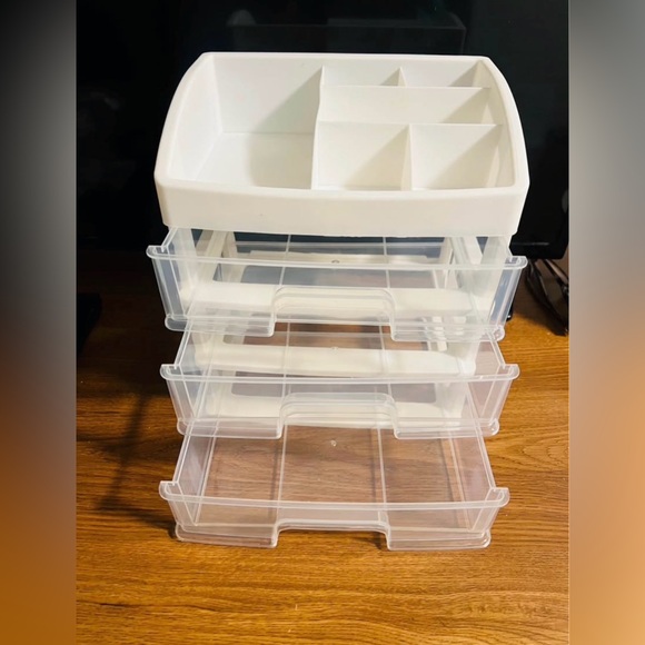 Keep your space tidy with this versatile white Make up stackable storage organizer.