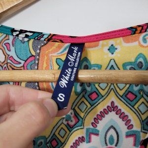 White Mark 3/4 Sleeve Shift Dress Mandala Print Multicolor Stretch Blend Small