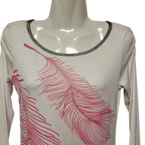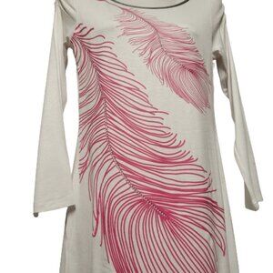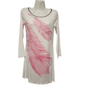 White Mini Dress Tunic Top with Sequin Embellished White Feather
