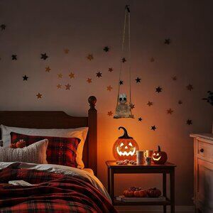 * 🎃 Spooky & Whimsical Halloween Decor: Features a swinging skeleton holding a ghost cat, creating a unique blend of eerie and playful vibes perfect for spooky season indoor or outdoor displays.