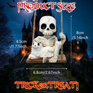 * 👻 Miniature Haunting Detail: Intricately sculpted 3.2-inch figurine captures charming details of the skull skeleton, ghostly feline, and swing for eye-catching spooky accents.