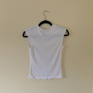 This super cute ribbed top is a perfect basic for layering! It’s Labeled as a size M but can fit from size XS-M depending on desired fit.