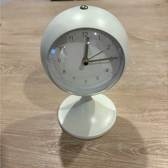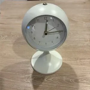 Enhance your home decor with this elegant white table clock. Its sleek design adds a modern touch to any room.