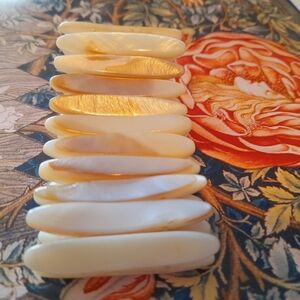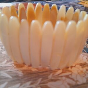 White shell bracelet with shimmering sparkle . it can be worn inside or outside as the have two different colors. Inside there are gold tones.