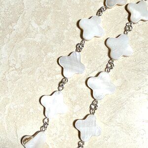 17 mm white mother-of-pearl clover shell beads, 34 mm x 13 mm (1 3/4") silver color "Paw Print Heart Beat" pendant