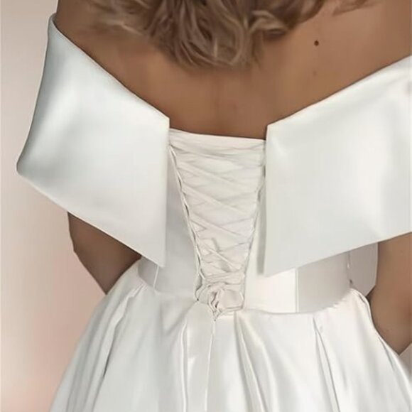 White Off The Shoulder Satin Dress Wedding Prom A Line Formal Dress