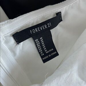Chic structured mini dress from Forever 21 featuring a layered ruffle off-shoulder neckline, fitted bodice, and full-length back zipper. Crisp white fabric with a flattering, tailored silhouette. Gently worn and in excellent condition — perfect for grad or vacays