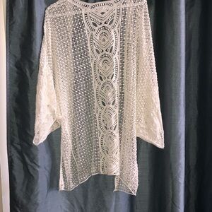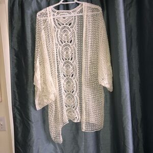 White Open-Front Cardigan/ coverup is perfect for a bathing suit coverup- OS this is new or like new