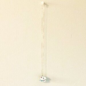 Express your creativity with this unique paint palette pendant necklace, perfect for artists and crafters. The pendant showcases a white base with colorful paint splatters, adding a playful touch to its design. The delicate chain complements the artistic theme, making it an excellent accessory for everyday wear or conversation starter. Express your creativity and passion in an adorable, decorative way!